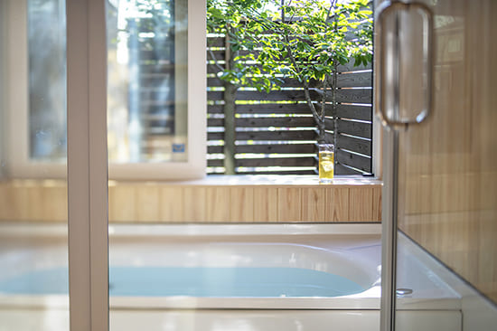 木漏れ日の差し込むお風呂で癒しのバスタイムを。