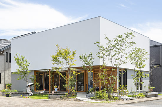 自然樹形の雑木を植えて元気いっぱいの子供たちが