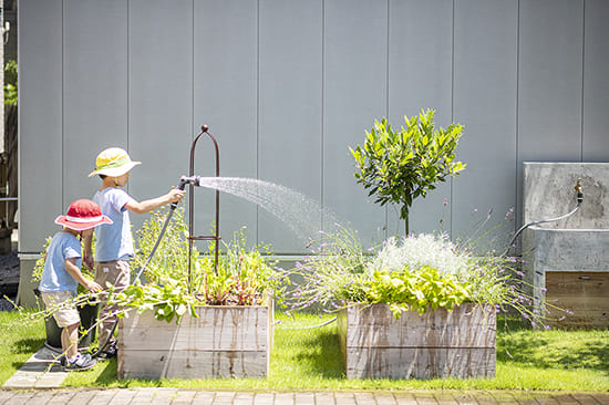 料理に使うハーブや野菜、子供の好きな植物を一緒に育てて、