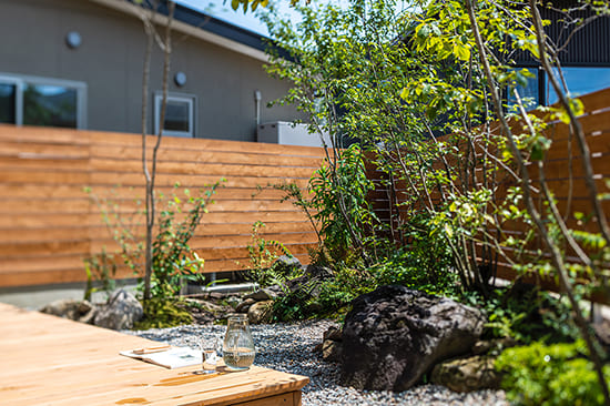 板張りが美しい和モダンな建物に合わせ、