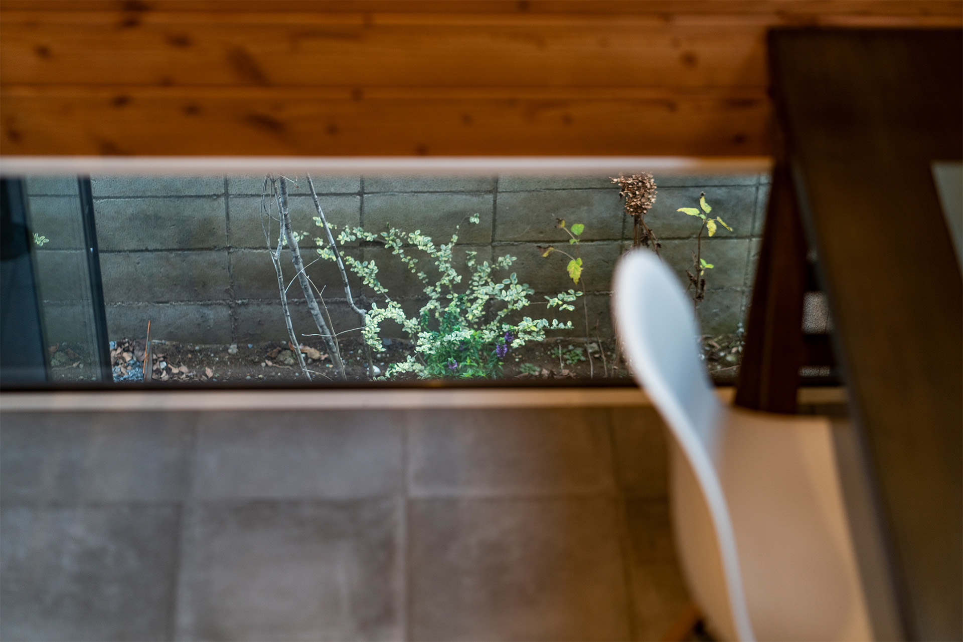 2階の書斎の窓を見下ろすとサイドガーデンが見えます。