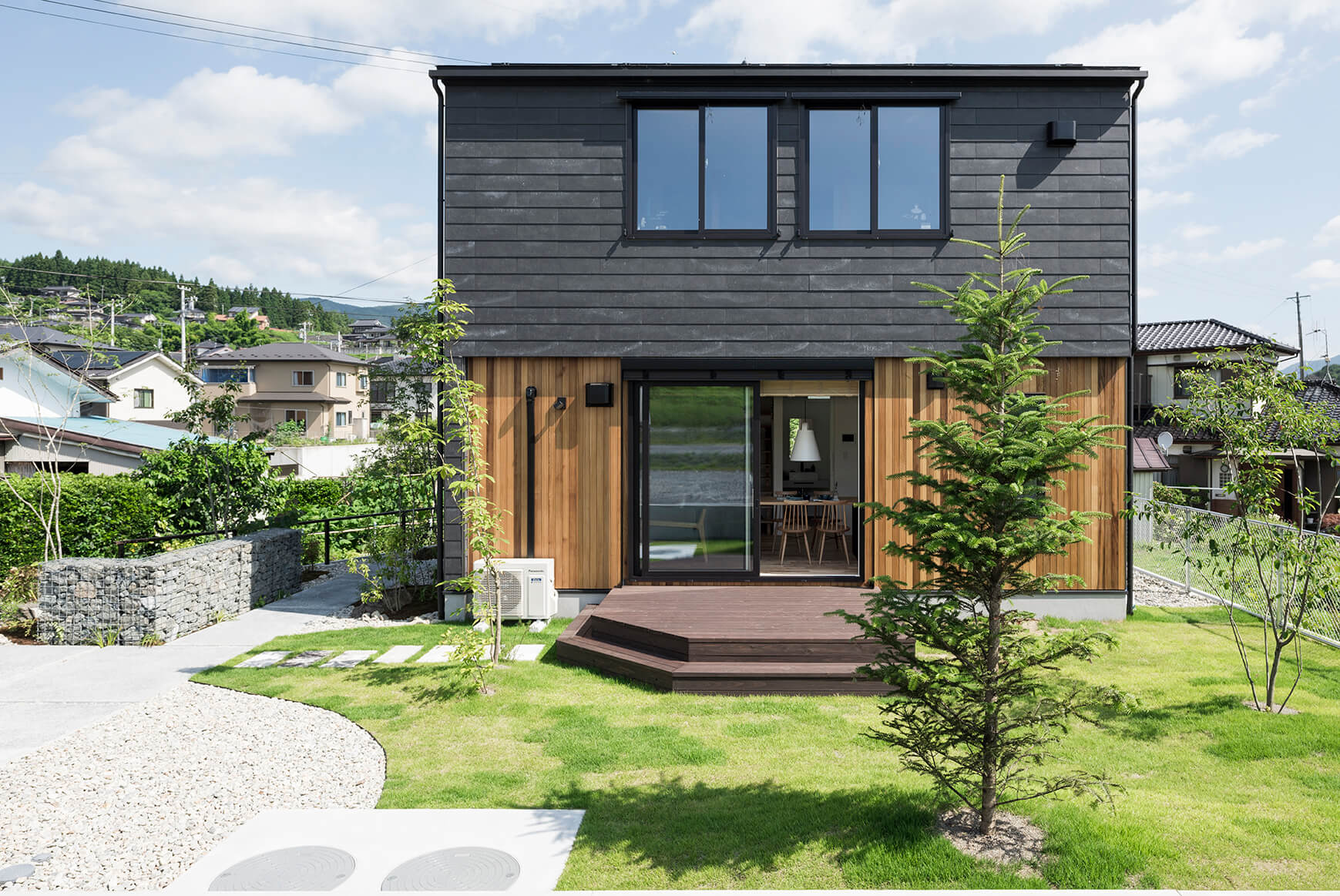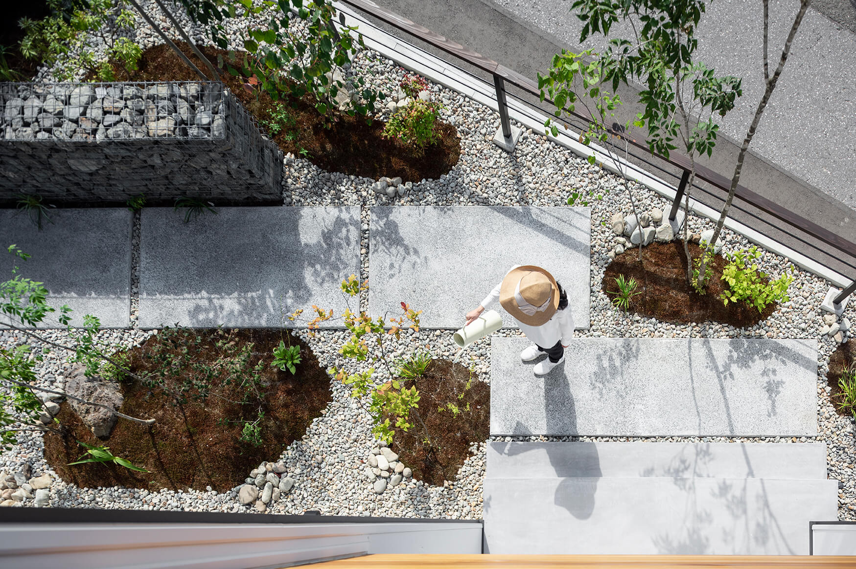 車を止めていないときも家と庭が美しく見えるように工夫しています。